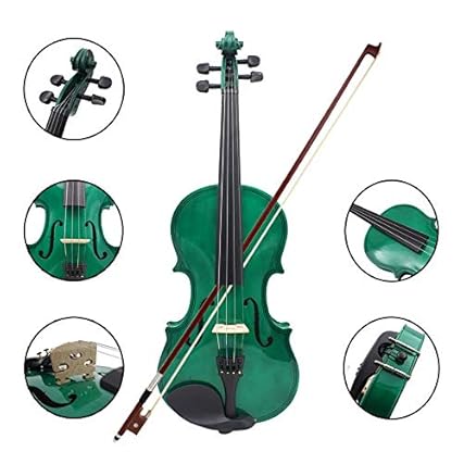 ABMBERTK,Violine, 4/4 Full Size, Akustische Violine, Geige mit Koffer, Bogen, Kolophonium, Violine, grün